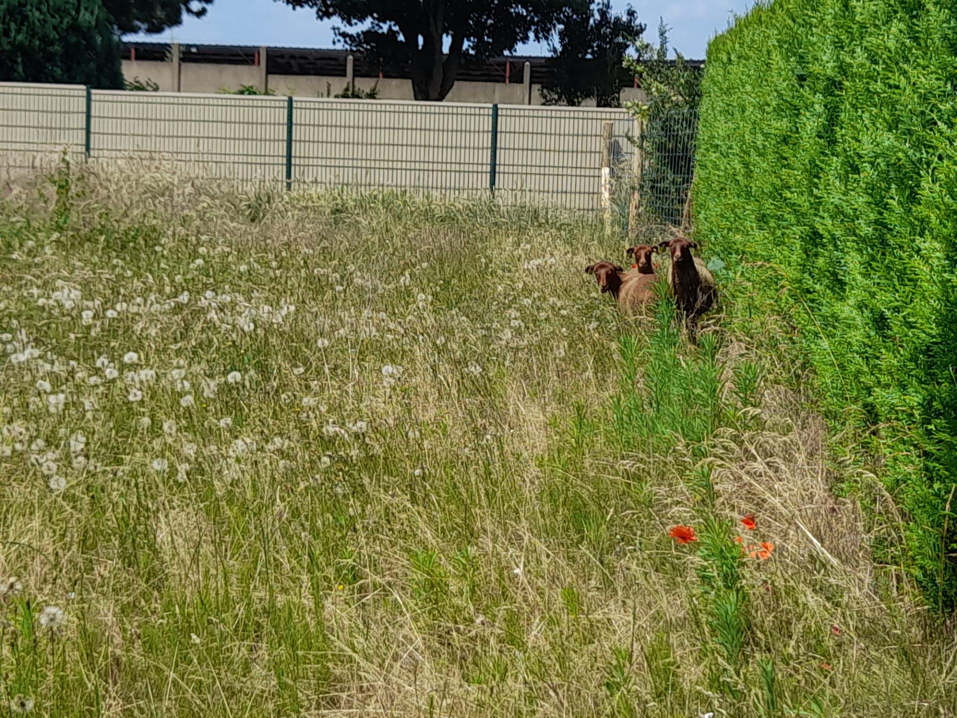 6 moutons et 1 chèvre seront régulièrement présents pour entretenir la parcelle de façon naturelle. Ils seront déplacés périodiquement sur d'autres espaces comme l’espace vert au niveau de la rue de Paris, pour laisser le temps à la végétation de se régénérer.